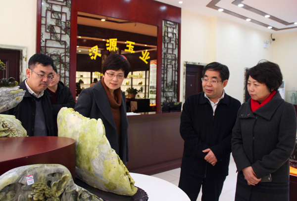鐘順虎先后參觀了公司玉雕廠和玉石展廳,在參觀過程中聽取了何淑萍關于公司發展規劃、企業建設等方面的工作匯報。鐘順虎強調,企業要以文化為引領,通過持續技術創新、經營創新、文化創新等方式,探索并延伸企業文化內涵,抓質量文化和品牌文化等一系列正向企業文化,為企業快速發展提供強大的凝聚力和向心力。同時要求漢中市委宣傳部和南鄭縣委宣傳部將“漢中玉”宣傳工作納入下年度工作重點,力爭將“漢中玉”打造成為有地域特色的文化產業。