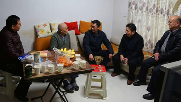 1月6日,劉建勤一行前往第三地質(zhì)隊(duì)送溫暖,并在該隊(duì)黨政負(fù)責(zé)人陪同下,看望慰問(wèn)了李志明和楊鎖平兩戶退休困難職工,關(guān)切地詢問(wèn)老人的身體和生活狀況,叮囑他們的子女要照顧好老人,并送上慰問(wèn)金。