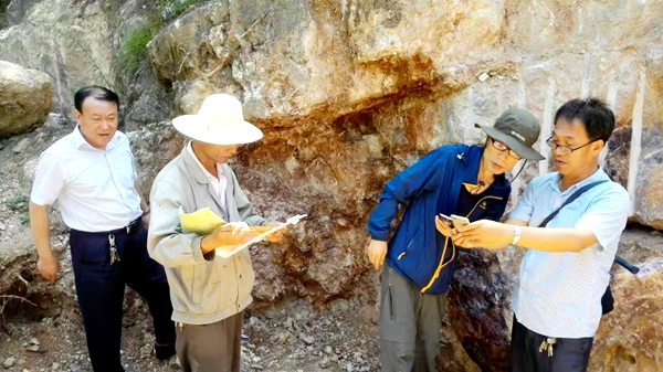 齊文一行冒著酷暑到達項目工作區,首先聽取了該隊總工程師和項目組的工作匯報,檢查了項目工作記錄、工作圖件等資料,詳細詢問了項目的工作進展情況,并現場察看了礦脈的產狀、露頭和走向。齊文說,在寶雞地區發現的玉石礦,與我省商洛地區發現的玉石礦類型基本接近,雙方應該有著一定的關聯,這需要技術人員在工作中不斷地進行驗證。齊文對項目實現找礦突破寄予厚望,并勉勵地質技術人員開拓思路,扎實工作,善于研究和總結,努力出大成果。
