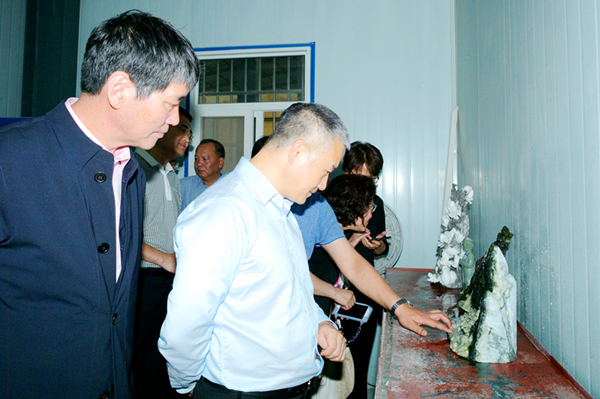 鄒展業一行深入漢源玉業公司玉石工藝廠和漢中玉直營展廳,詳細了解了漢中玉的工藝流程和市場銷售情況,并召開座談會,聽取了何淑萍關于漢中玉文化產業發展和未來規劃的情況匯報。