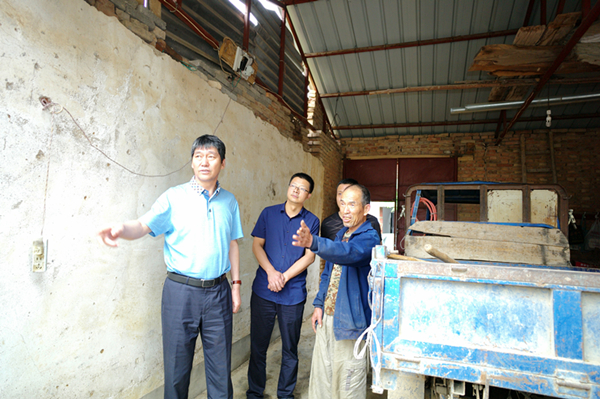 幫扶對(duì)象王忠錄家,目前主要從事肉牛養(yǎng)殖業(yè)和核桃種植業(yè),女兒已經(jīng)出嫁,家里僅剩老兩口2人,家庭收入穩(wěn)定。正值汛期,王忠錄家的土坯墻存在嚴(yán)重的安全隱患,趙廷周和牛少逢提醒王忠錄,一定要盡快處置,防止土坯墻傾覆釀成事故。
