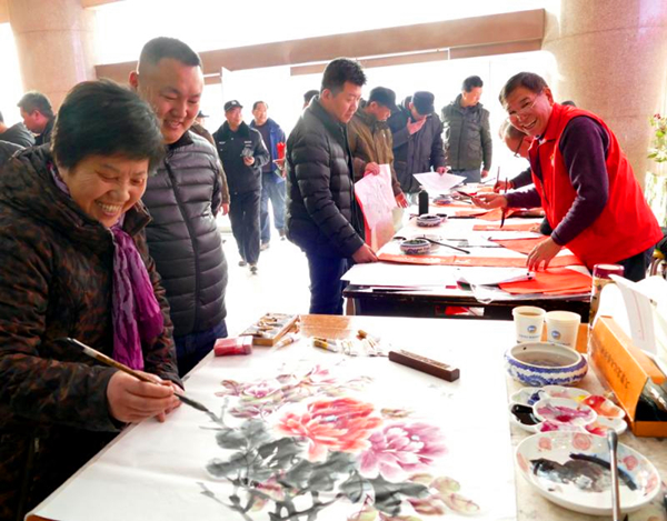 2018年1月22日至2月9日,陜西地礦老干部書畫志愿者服務(wù)隊(duì)共22人,分兩組,赴陜南、關(guān)中、西安地區(qū),到陜西地礦集團(tuán)13個(gè)基層單位和集團(tuán)總部,為廣大職工家屬書寫春聯(lián)、福字4200余幅(套),書法繪畫作品300余幅,受到廣大職工群眾熱烈歡迎。下面是這次活動(dòng)的部分照片。(攝影:靳四本等)