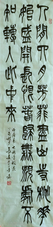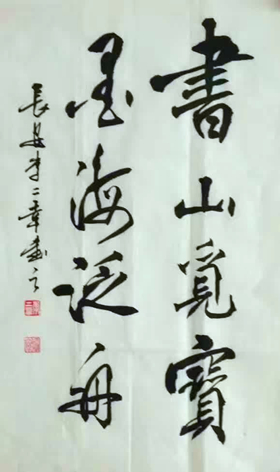 余自幼好書,描紅時即得圈較多。小學五年級時得顏真卿《多寶塔碑》,照貓畫虎,收益匪淺。初中畢業后回農村,辦板報、畫壁報,在仿宋、黑體等美術字上下了一番功夫。因學業不錯,寫字較好,還懂得一點二胡、笛子之類的東西,被選中當了民辦教師。學生放學以后,即在教室(村北一古廟上殿)地面的方磚上用毛筆蘸水畫字。那時報上書上,街頭標語,門面匾額,但見好字,如見珍寶,常常忘卻正事,駐足凝神,心追手摹。曾與人合作為同鄉幾個村設計策劃舉辦了今昔比較的教育展覽,還常被公社請去寫獎狀、刷標語。到機關工作后,對書法的興趣從未稍減,收入雖薄,但見好帖、好書卻毫不吝惜以購之。有空即習,長期未輟。