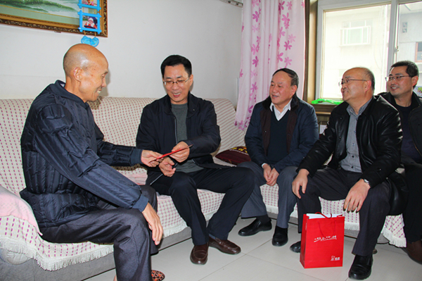 1月6日,劉建勤一行前往第三地質(zhì)隊(duì)送溫暖,并在該隊(duì)黨政負(fù)責(zé)人陪同下,看望慰問(wèn)了李志明和楊鎖平兩戶退休困難職工,關(guān)切地詢問(wèn)老人的身體和生活狀況,叮囑他們的子女要照顧好老人,并送上慰問(wèn)金。