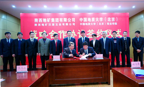 簽約當天,陜西地礦漢源玉業有限公司與中國地質大學(北京)珠寶學院同時簽訂了合作協議。