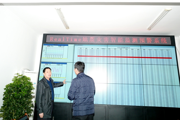 趙廷周一行實地參觀了地質災害監測預警中心“RealTime地質災害智能監測預警系統”,并詳細了解了智能監測預警系統工作平臺的運行情況。趙廷周對物化探隊加大技術創新力度、加強地質災害評估和勘查能力建設所取得的成績給予充分肯定。同時希望物化探隊將技術優勢更多地應用于工作實踐,不斷開拓新領域,達到新高度,實現新發展,艱苦奮斗再創業,在踐行“三個地礦”的征程中取得新的更大的成績。