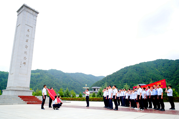 在馬欄革命紀(jì)念碑前,面對(duì)鮮艷的黨旗,集團(tuán)公司領(lǐng)導(dǎo)和機(jī)關(guān)黨員重溫入黨誓詞。鏗鏘的誓言,響徹在這片紅色土地的上空,宣示出集團(tuán)公司領(lǐng)導(dǎo)和機(jī)關(guān)黨員“不忘初心、牢記使命”,為黨的事業(yè)忠貞不渝、奮斗終生的決心。